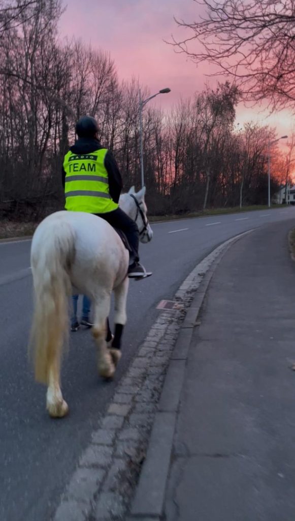 Aber der Reiha nach Andy Hohenwarter aus der Life Radio Morgenshow stand vor der größten Pflicht seiner Life Radio Karriere. Er musste ein Pferd organisieren und damit zur Arbeit reiten. Und er hat es tatsächlich geschafft. Kurz vor 6 Uhr Früh sollte es eigentlich losgehen: Andy draußen und Steffi bzw. Christian im Studio.