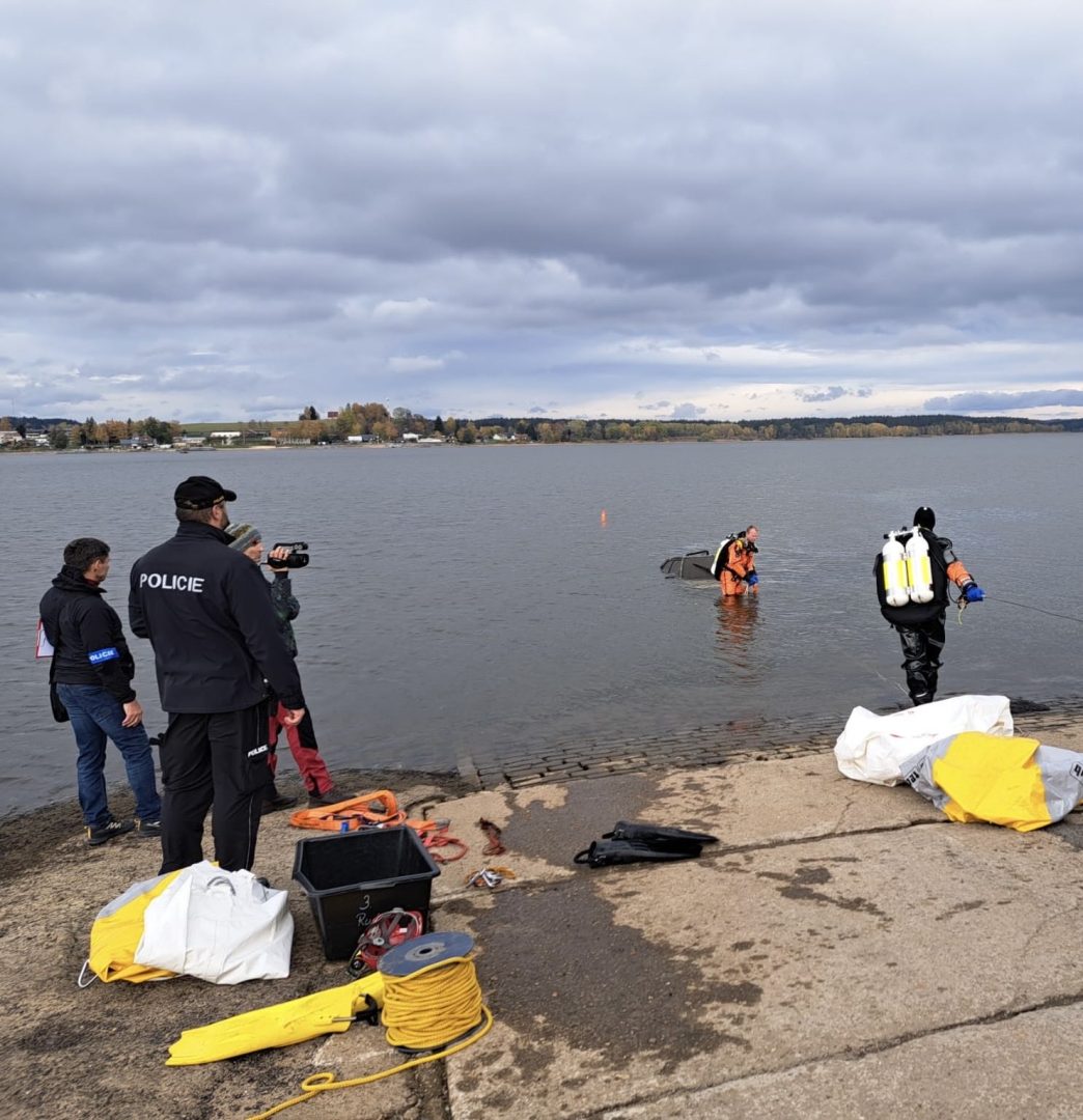 Soldaten des tschechischen Militärs haben am Mittwoch-Nachmittag eine Tauchübung im Moldau-Stausee gemacht. Weil der Wasserstand derzeit so niedrig ist, sind sie bei einer Fähren-Anlegestelle auf ein Auto gestoßen.
