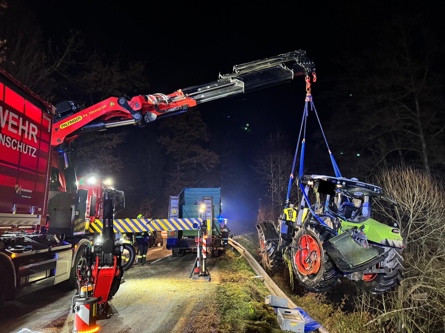 Großes Glück dürfte ein Traktorlenker in St. Georgen an der Gusen gehabt haben. Er ist mit dem Traktor samt Anhänger von der Straße abgekommen und ins Bachbett der Gusen gestürzt. Dabei ist er weitgehend unverletzt geblieben. Die Bergung des Traktors hat dann gut fünf Stunden gedauert. Dafür waren drei Feuerwehren mit 50 Feuerwehrleuten im Einsatz.